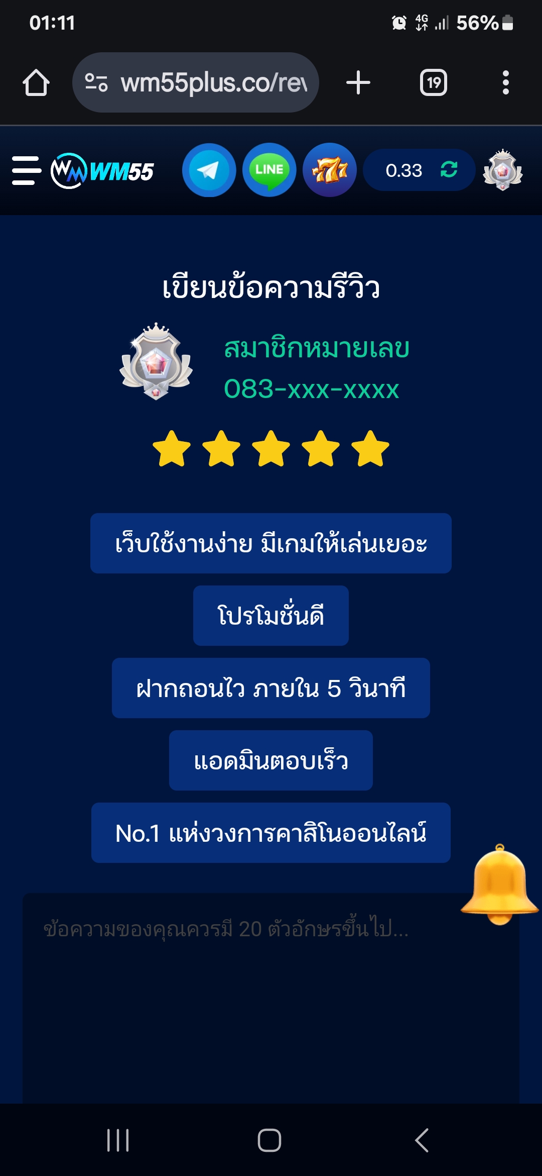 “WM55VIP” เข้าสู่หน้าเว็บ